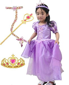 搭の上のラプンツェル 風 子供用 コスチューム 豪華6点セット ドレス ウィッグ アームカバー ベルト ティアラ ステッキ 100 140 Credible To506x Credible Yahoo 店 通販 Yahoo ショッピング
